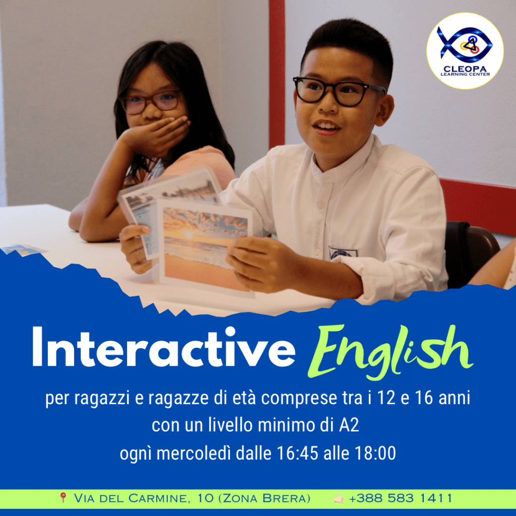 Sono in corso le iscrizioni per il nostro corso di INTERACTIVE ENGLISH mirato per adolescenti di età comprese tra i 12 e 16 anni.